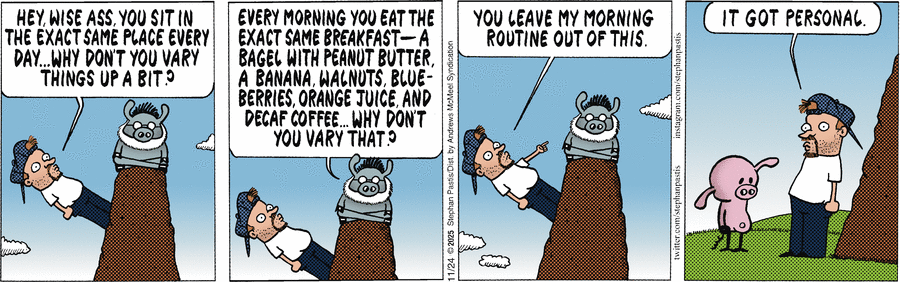 HEY, WISE ASS, YOU SIT IN THE EXACT SAME PLACE EVERY DAY... WHY DON'T YOU VARY THINGS UP A BIT?